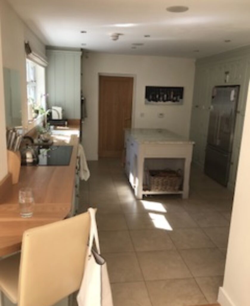 The central island featured a lovely butcher’s block-style design topped with granite, which was still in excellent condition. With careful preparation and attention to detail, I was able to focus on rejuvenating the wooden worktops and repainting the kitchen units to achieve a refreshed, timeless look.